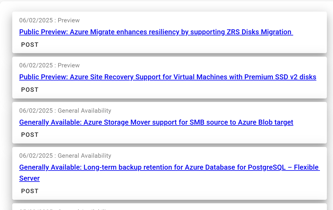 This URL shows the list of Azue Updates contains "POST" button to X.